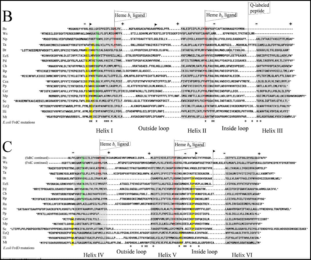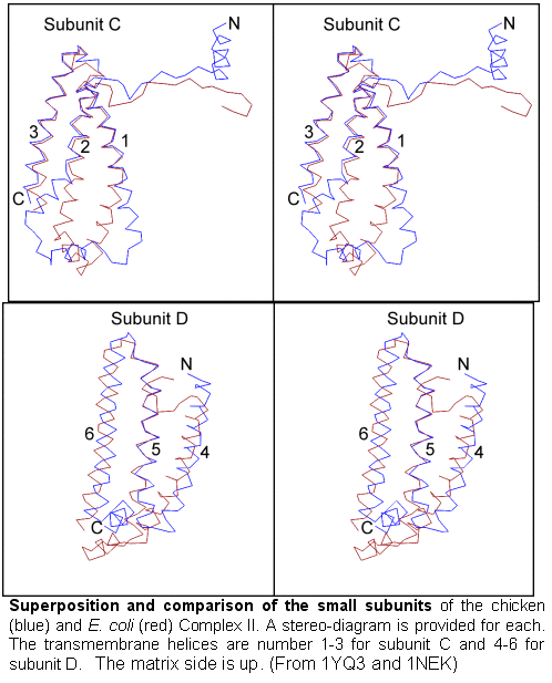 Structural alignment of the small subunits of mitochondrial and E. coli Complex II.