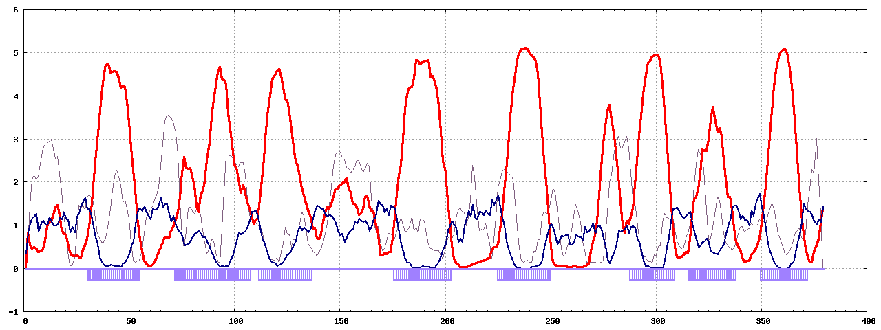 Violet boxes (below abscisa): Predicted transmembrane helix position. (DIG index)