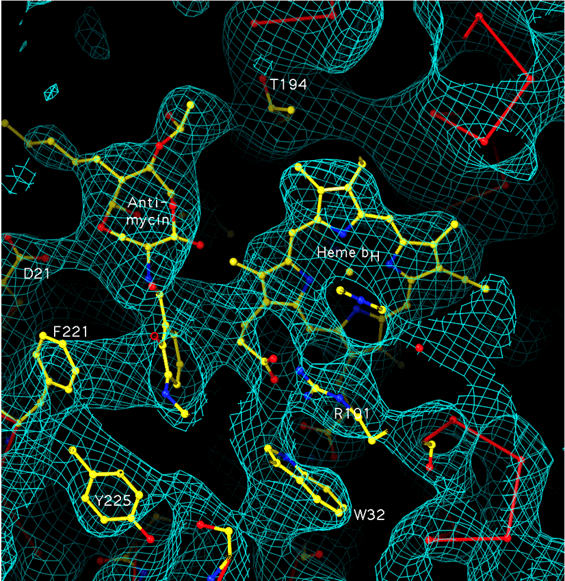 and the Qi site inhibitor, antimycin, have been located. The two Qo site